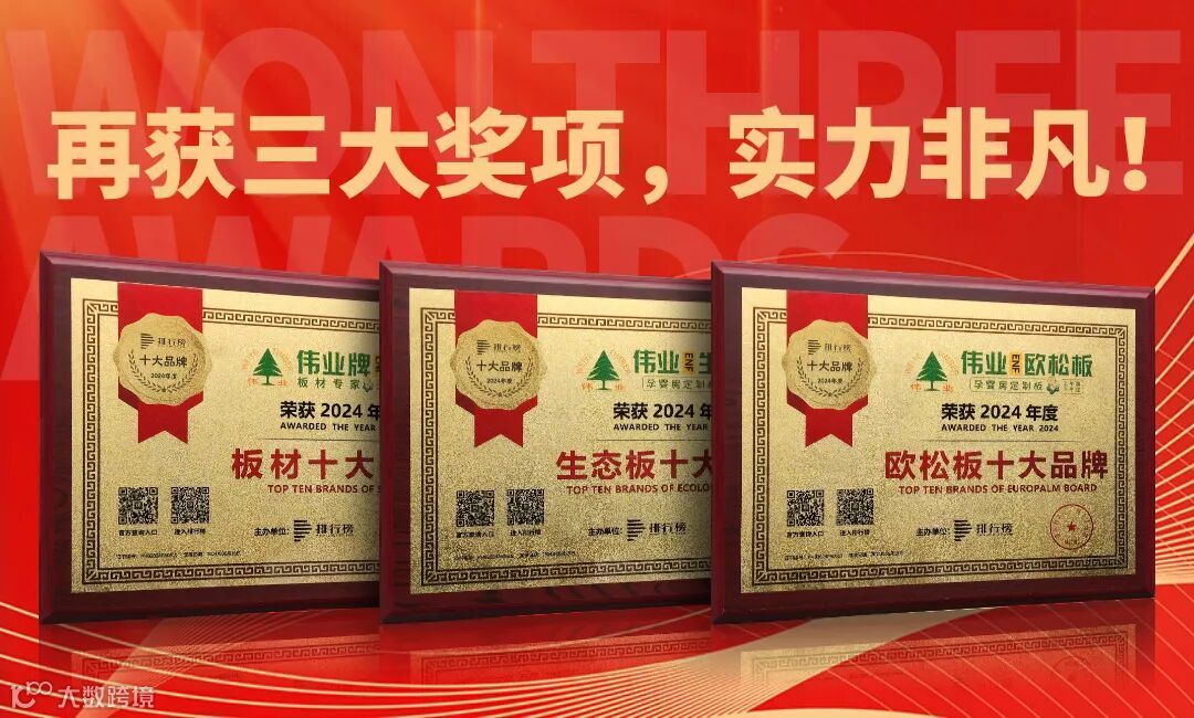 近日,伟业牌ENF板材再度斩获业界殊荣,在排行榜123公布分榜单中,一举荣获“欧松板十大品牌”、“板材十大品牌”及“生态板十大品牌”三项殊荣,充分凸显了伟业牌ENF板材在人造板行业中的卓越表现与广泛影响力。