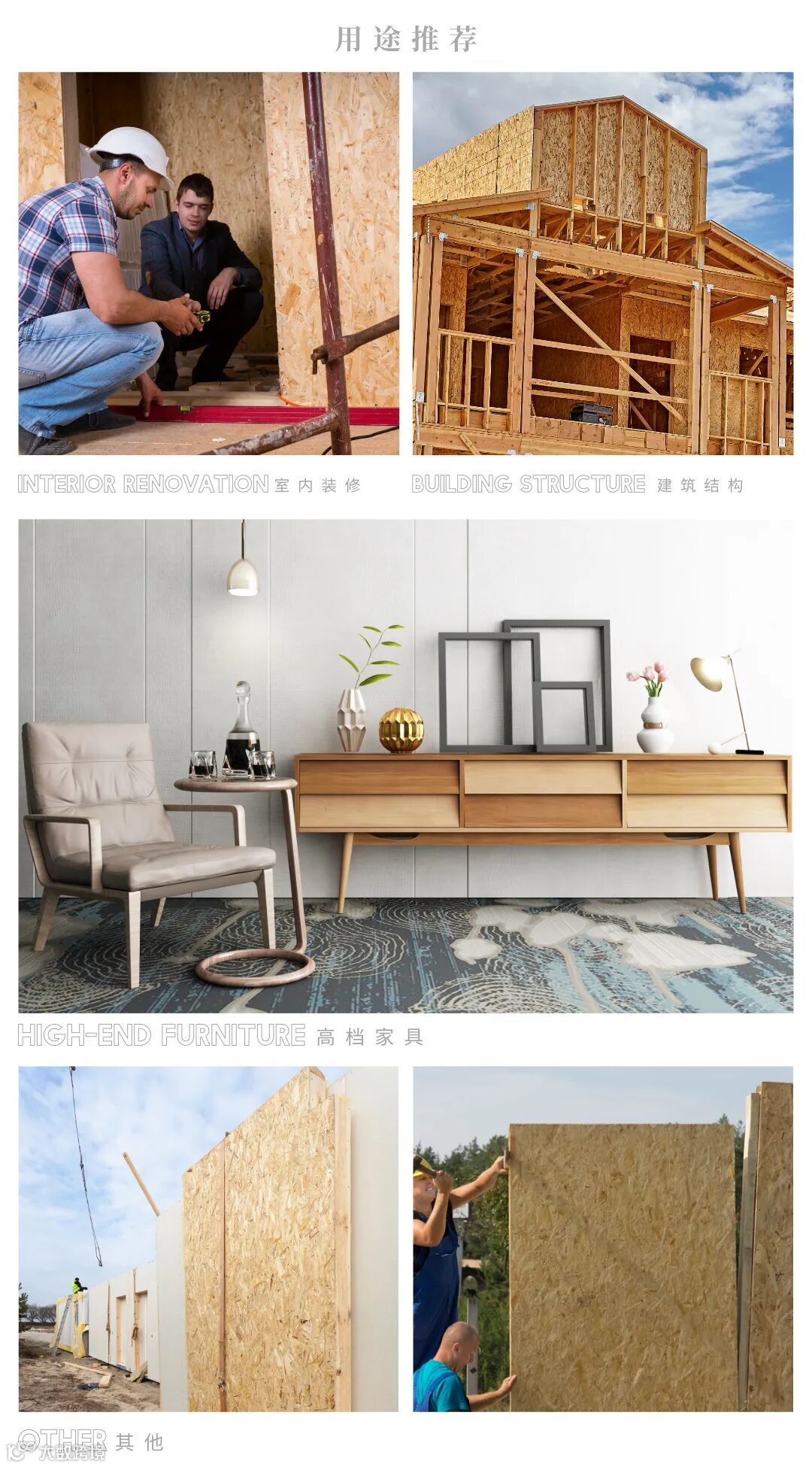伟业ENF欧松板是一款添加MDI胶制成的板材,具备以下优点: