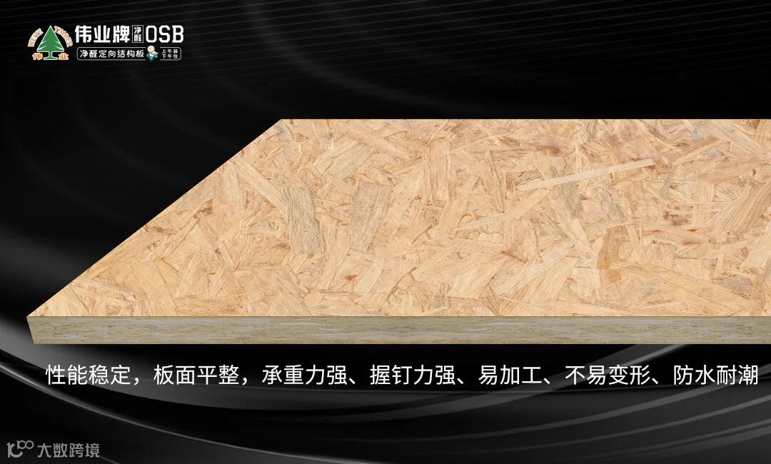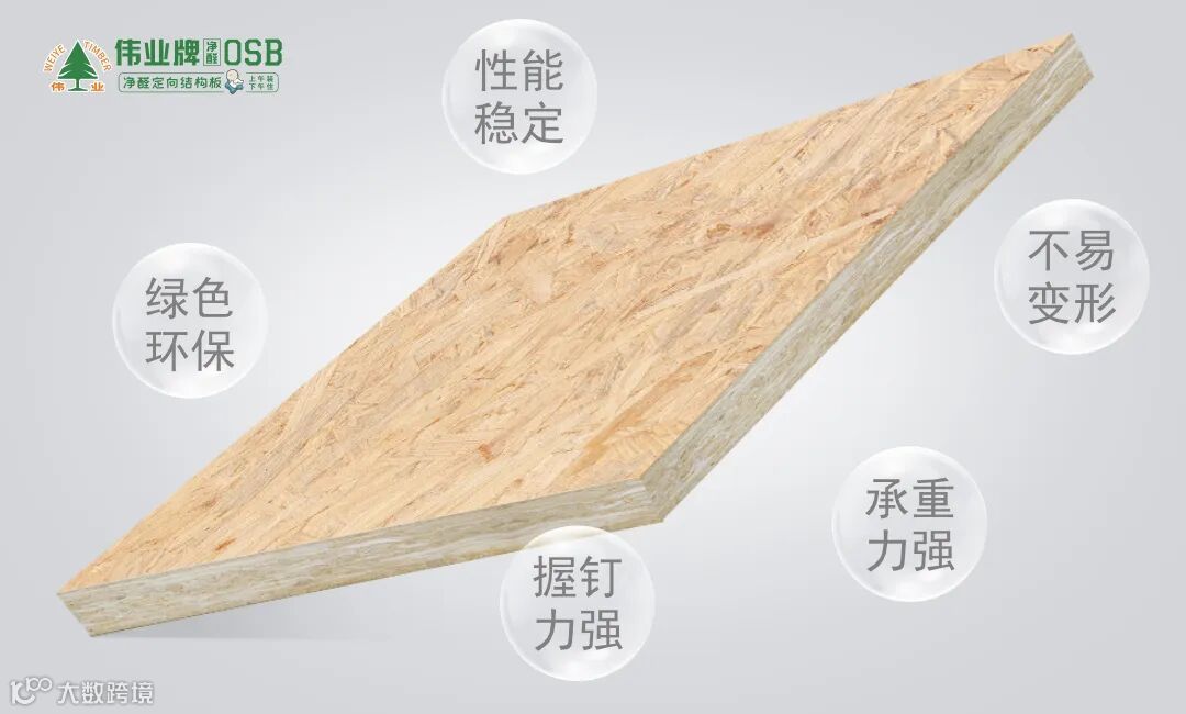 伟业牌OSB作为一款优质板材,强韧内[芯],展现实力担当,板材性能稳定,板面平整,承重力强、握钉力强、易加工、不易变形。防水耐潮,吸水厚度膨胀率2H≤1.6%,远优于国标2H≤8%的标准,是家装的理想板材。