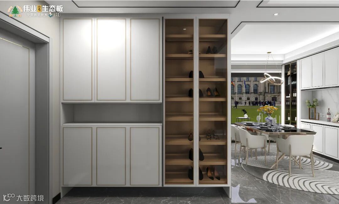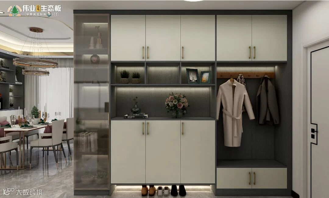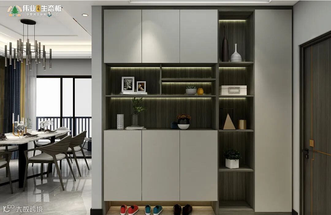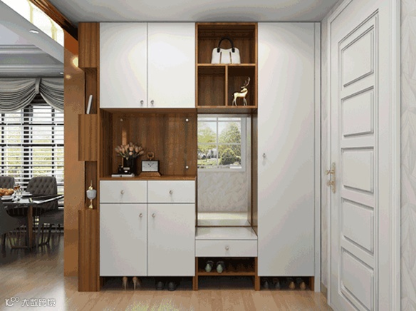 从室外转向室内,玄关存放鞋靴箱包,一方玄关,一抹风景,开门的瞬间,家的温馨气息扑面而来,心情切换到放松的状态,回归自我生活。