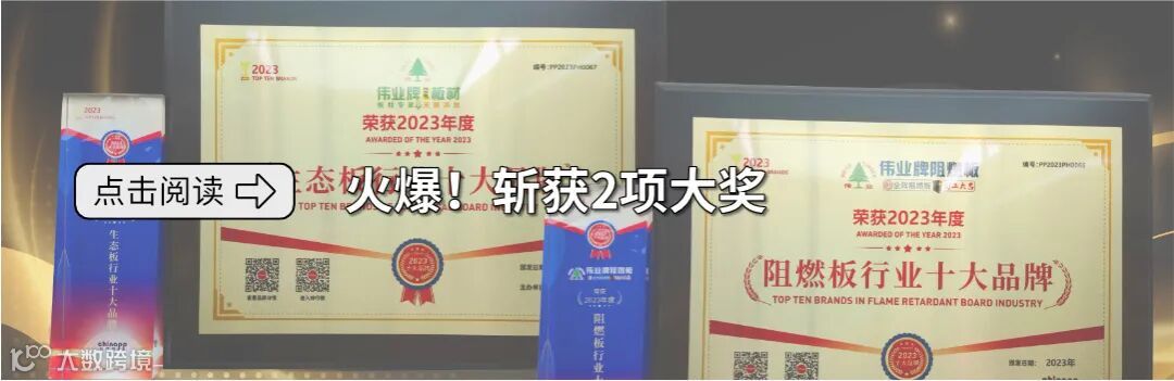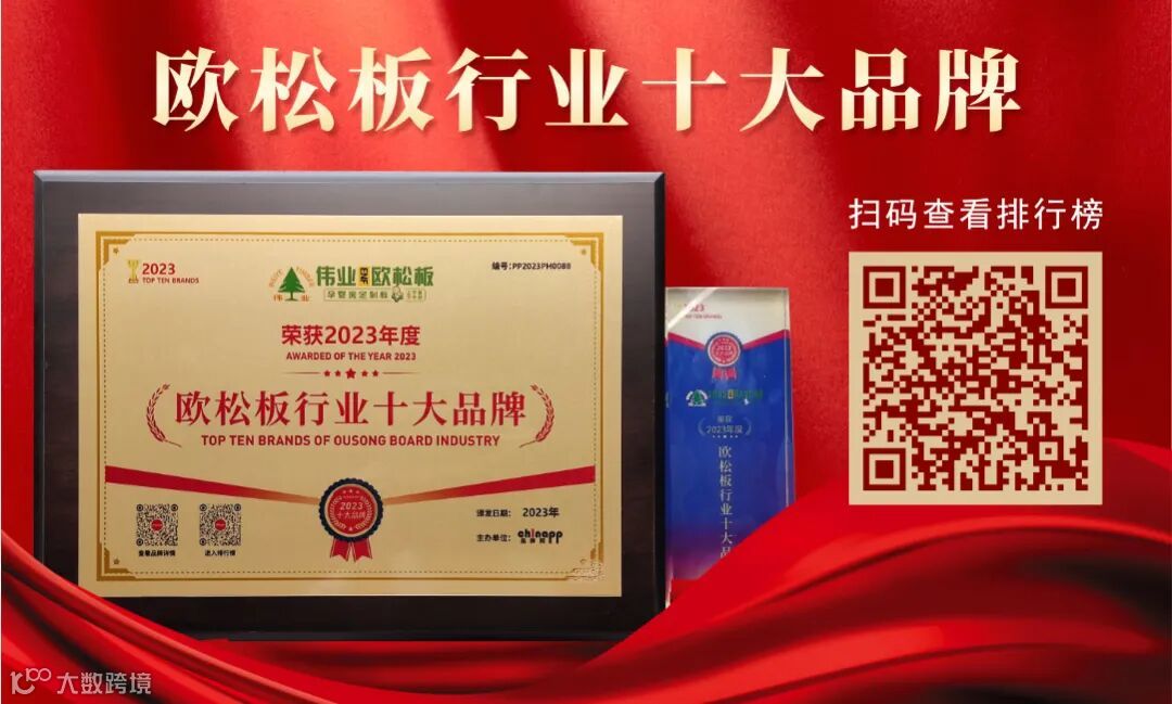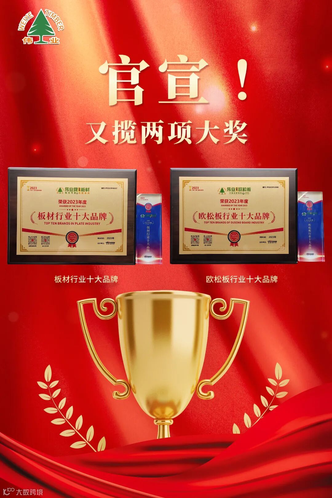 日前,2023年度品牌网“十大品牌”榜单重磅发布,伟业牌ENF板材一路过关斩将,再度斩获“板材行业十大品牌”、“欧松板行业十大品牌”两项殊荣,为品牌荣誉加冕!