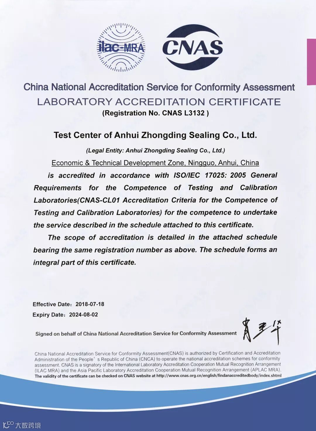 公司检测中心顺利通过国家实验室认可—— ISO/IEC17025 : 2005实验室认证。