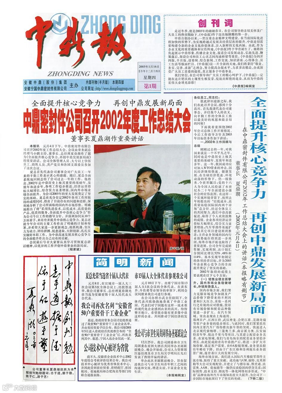 ▲夏鼎湖董事长为《中鼎报》创刊勉励题词:志于道,据于德,依于仁,游于艺。