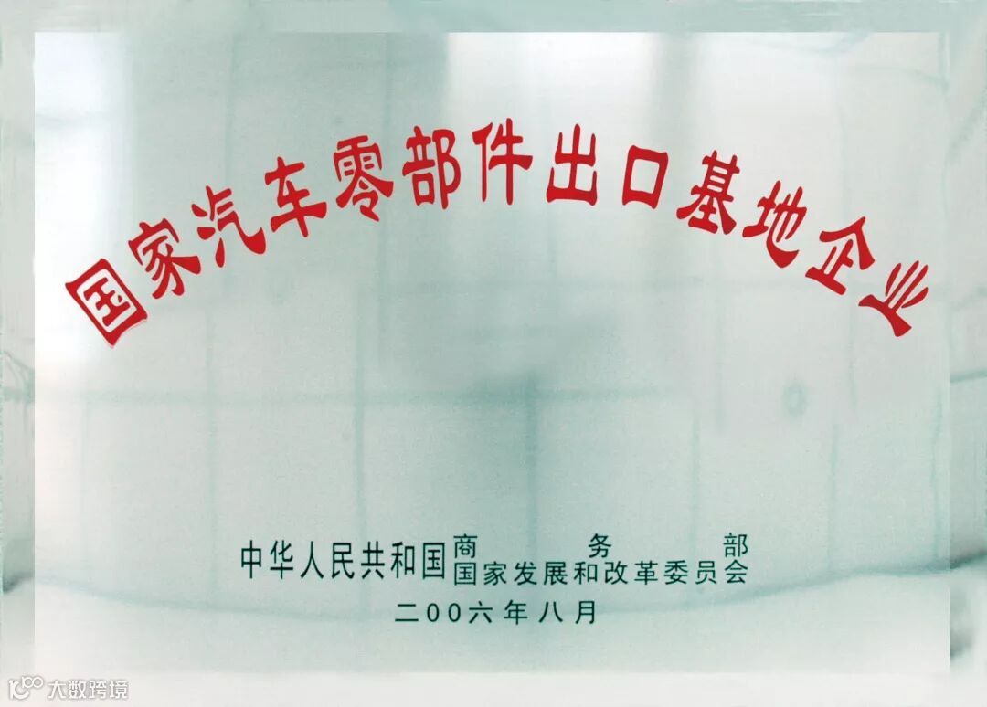 2006年8月17日,集团下属宁国中鼎密封件有限公司、广德中鼎汽车工具有限公司同时被国家商务部、发改委授予首批“国家汽车及零部件出口基地企业”称号。
