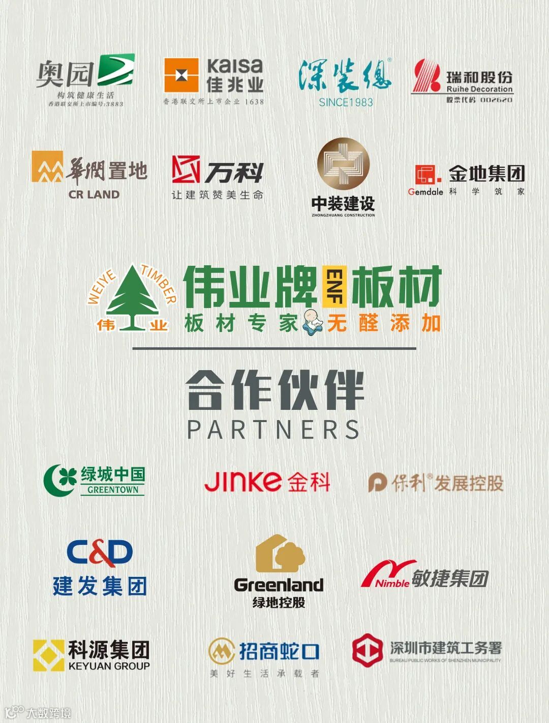 伟业牌是专注于环保板材的品牌,经过28年发展,已先后与华润置地、金科、金地、中装、深装总等国内一线企业建立良好合作关系,在实现项目价值目标上保持了高度契合,最终赢得了诸多客户的信任、认可与青睐。