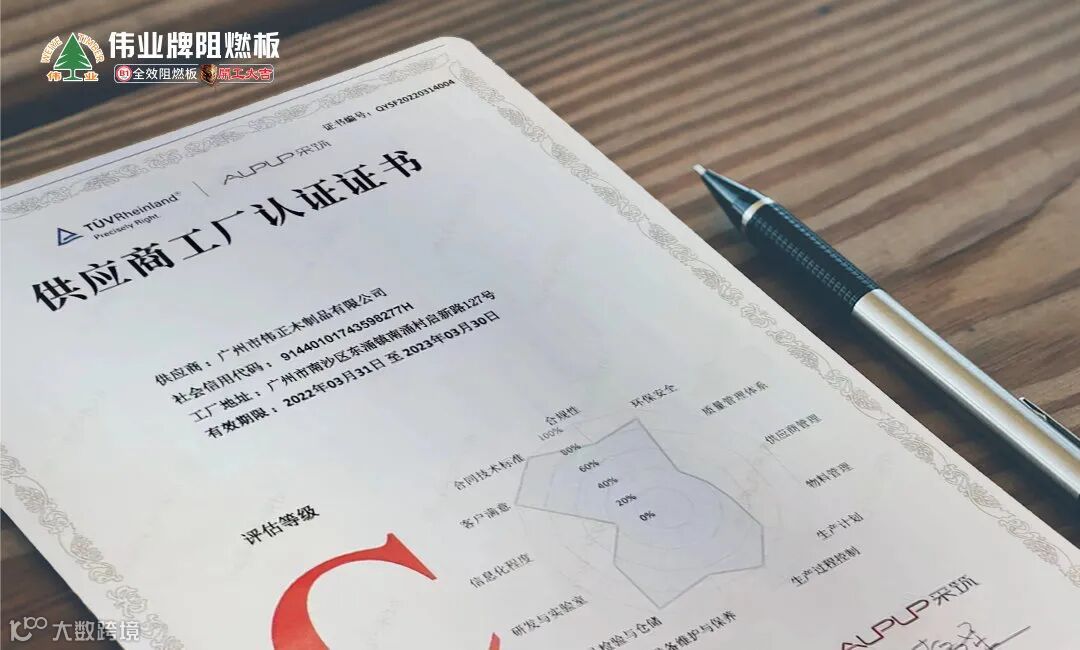 2022年6月,伟业牌阻燃板通过采筑平台严格的工厂审核和产品检测,以优异的成绩通过各项测试,正式进入采筑“严选供应商”名录。