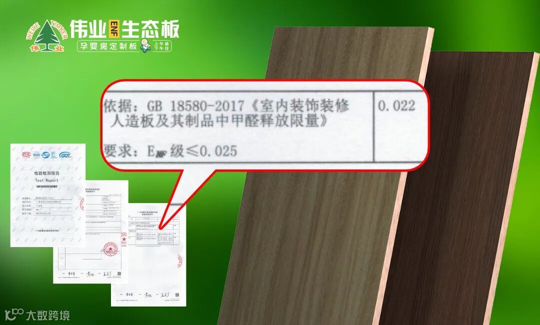 生态板全系产品均采用MDI无醛胶水,产品高于国标新标准ENF级(≤0.025mg/m³),达到ENF+级别,用超越极致的品质,向广大消费者兑现“绿色人居”的承诺。