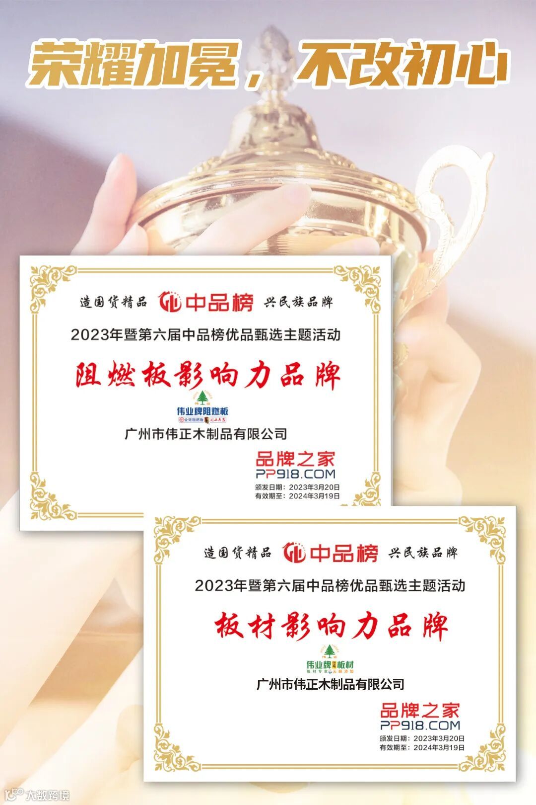 此次,获得中品榜2023年度“板材十大影响力品牌”、“阻燃板十大影响力品牌”大奖,是对伟业牌板材28年发展的完美概述,也是对伟业人勤勤恳恳、风雨兼程、不忘初心的最大肯定。