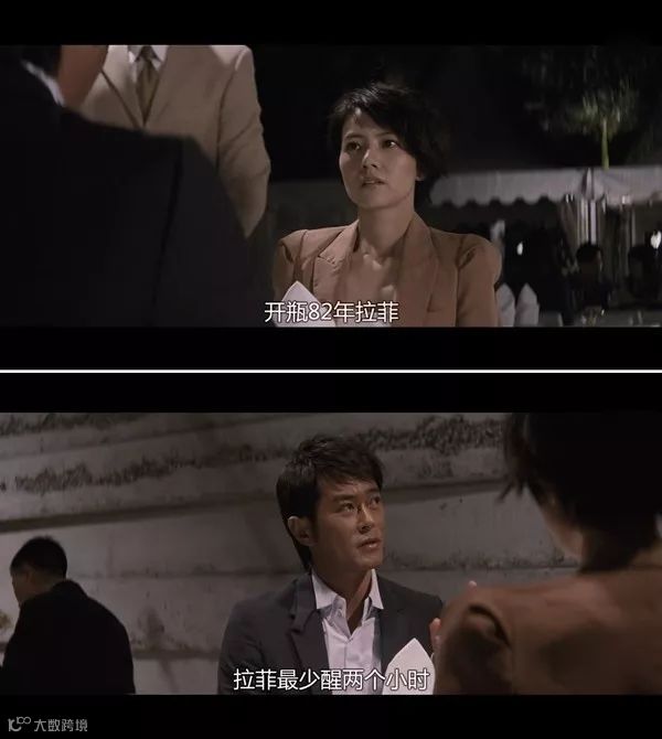 杜琪峰的另一部戏《单身男女》,上市公司高管要跟女神表白,便将其带到高级餐厅,点了瓶拉菲1982,还指定要醒两小时。但可能是因为面对女神,心中惴惴不安,高富帅竟然用一种不正确的方式“打开”了拉菲。