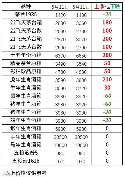 今日(6月11日),从网络发布的白酒价格行情监测数据显示,这几天茅台飞天酒的售价相比上月同期,有了很大幅度的上涨。