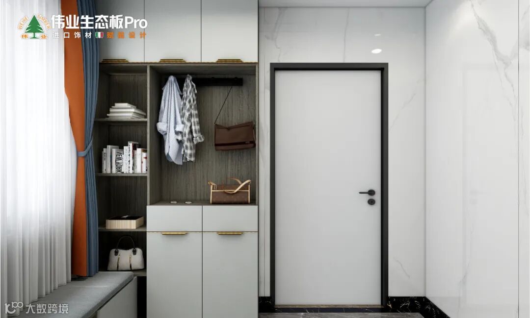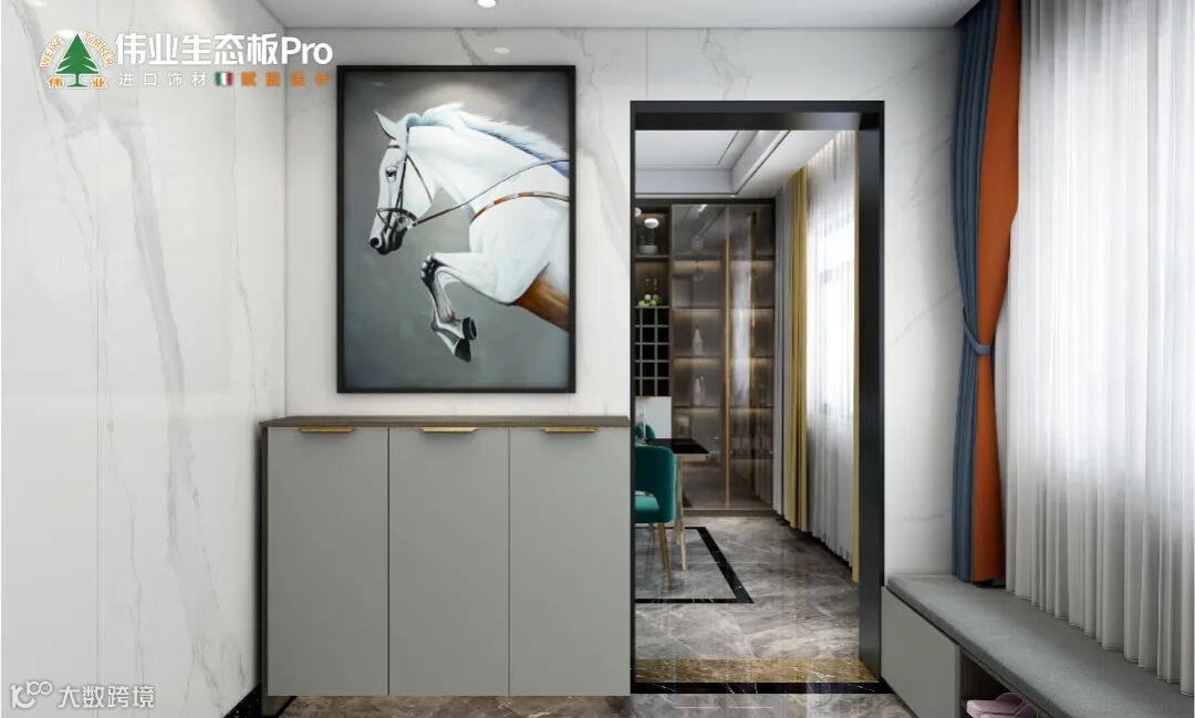 玄关是独立的门厅,窗边打造换鞋凳,方便进出换鞋,依墙打造矮柜+收纳柜,既不影响采光,又满足收纳需求, 让小门厅变身超级“储物间”,整体以灰色调为主,配以金属G型拉手点缀,打造自带高级感的返家第一站。