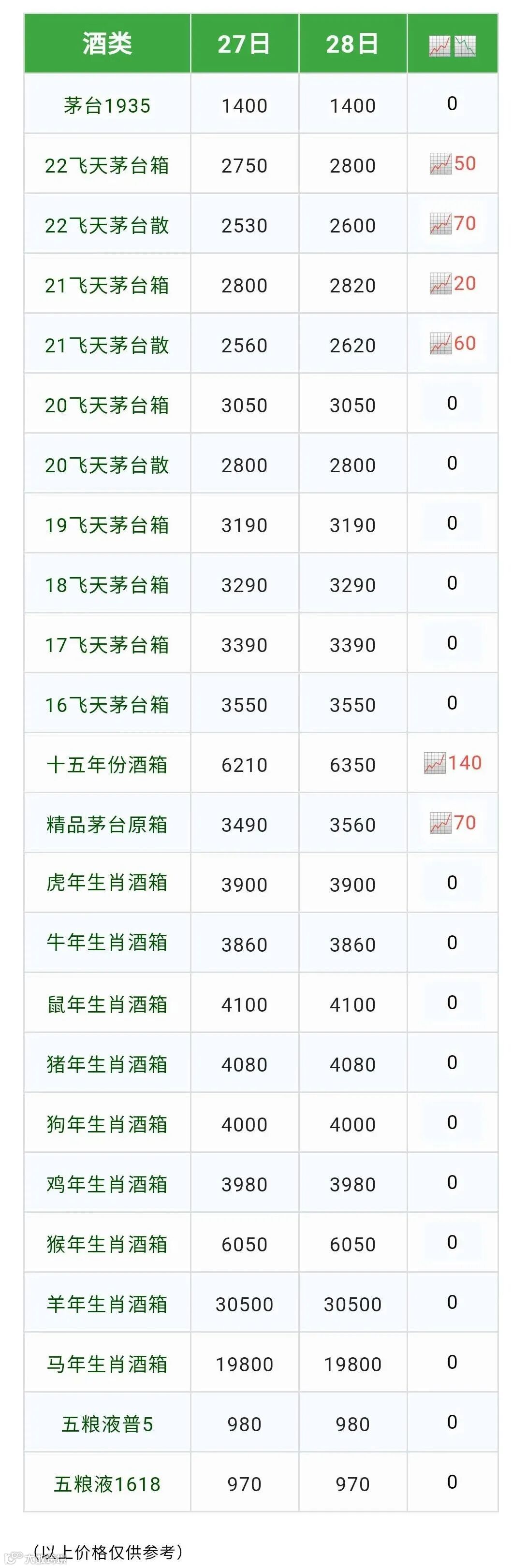 今日(3月28日),从网络发布的白酒价格行情监测数据显示,飞天茅台的售价有明显上升。