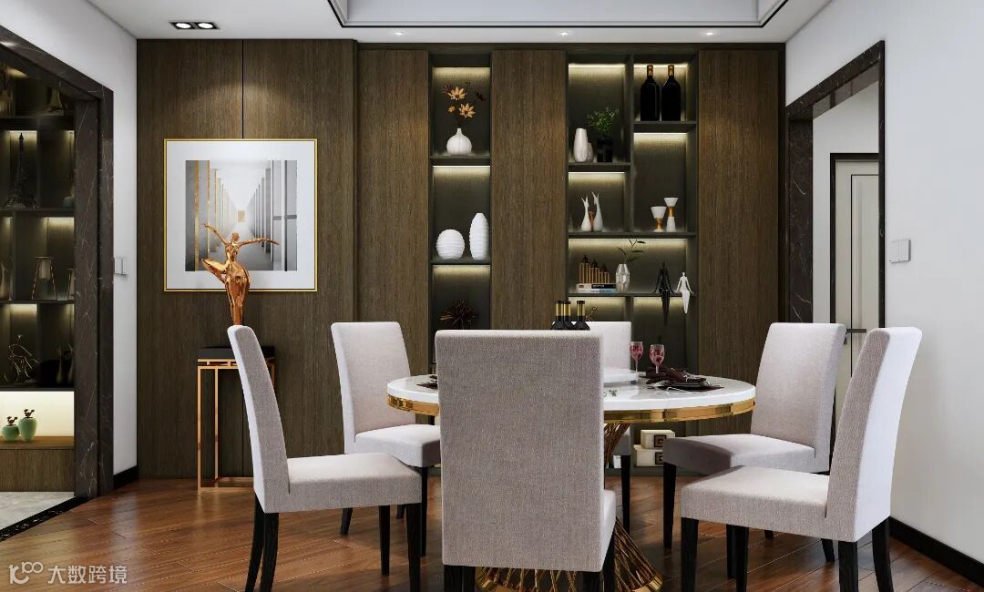 嵌入型餐边柜整体入墙,多为上下柜体,中间镂空,增加餐厅的储物能力,也缓解了厨房收纳的压力,瞬间让家清爽起来,这种餐边柜把空间占用最小化,让餐厅更显宽敞,非常适合小户型家庭。