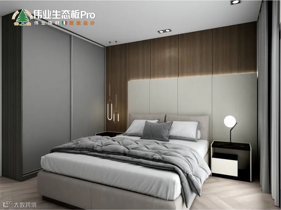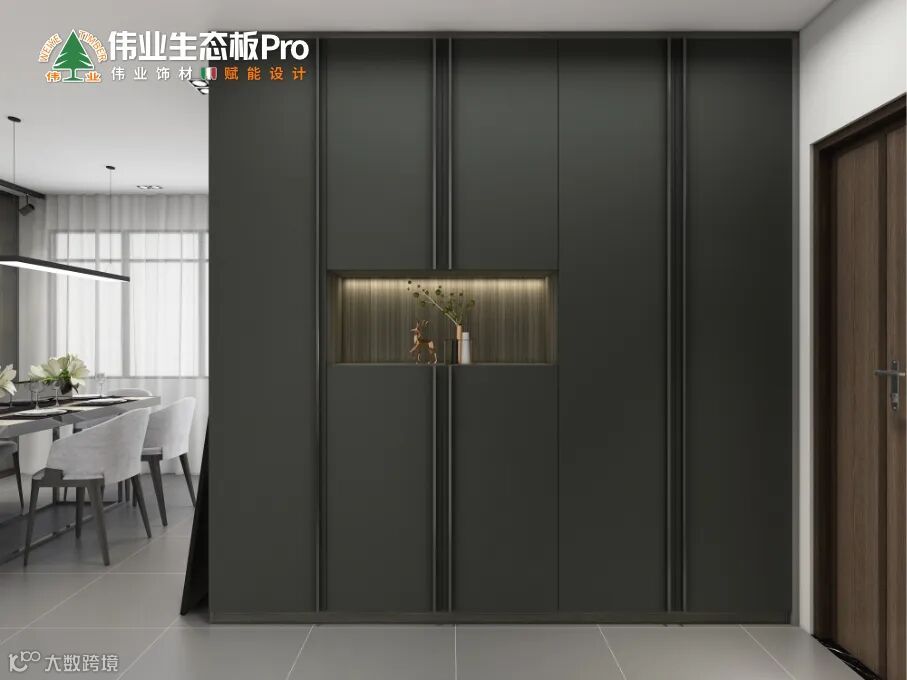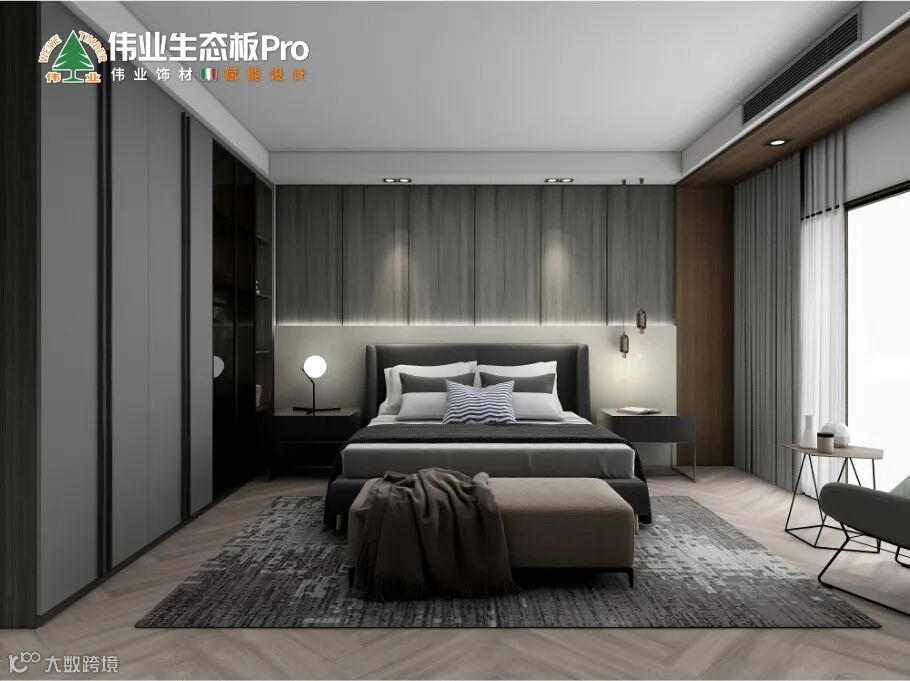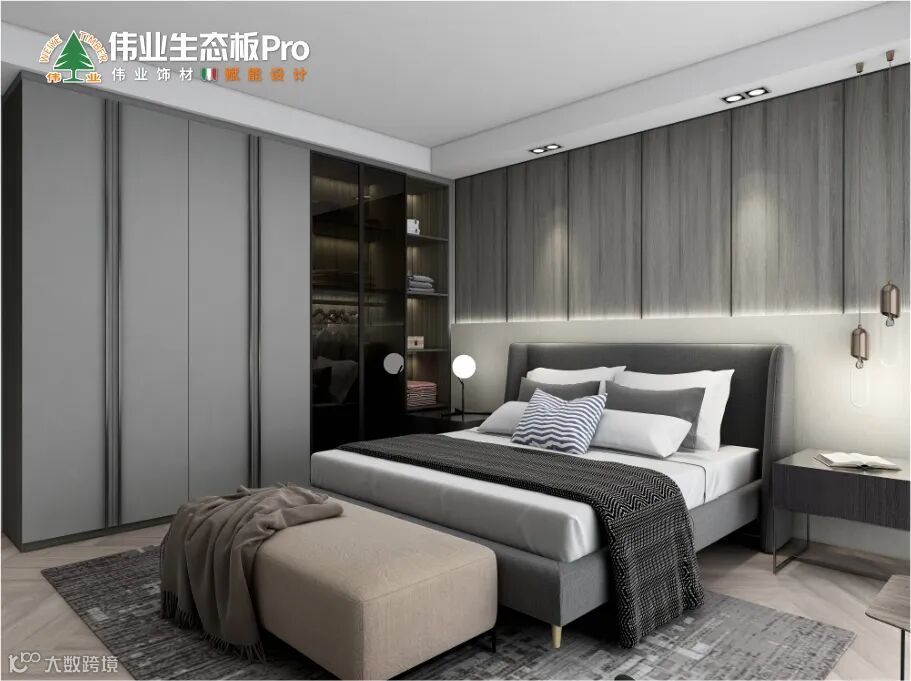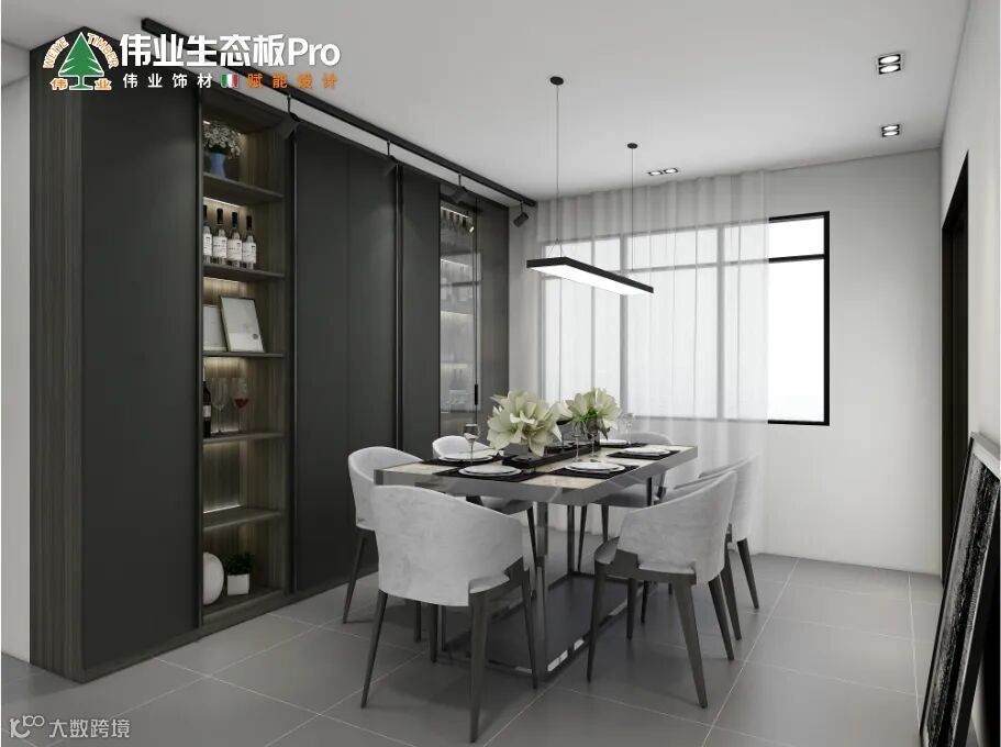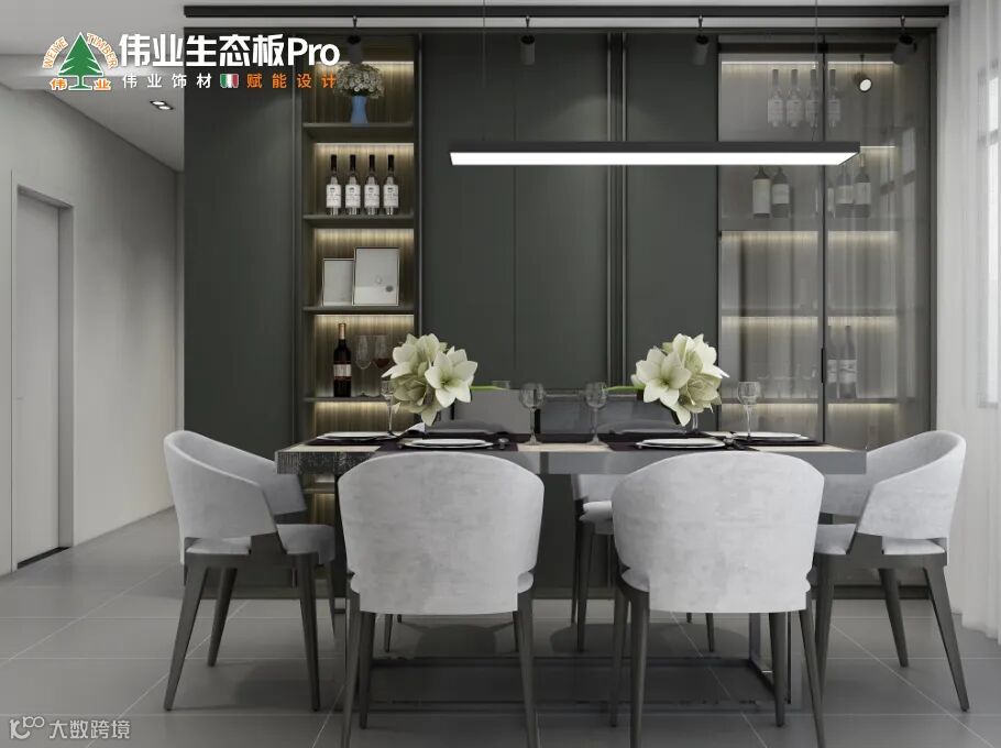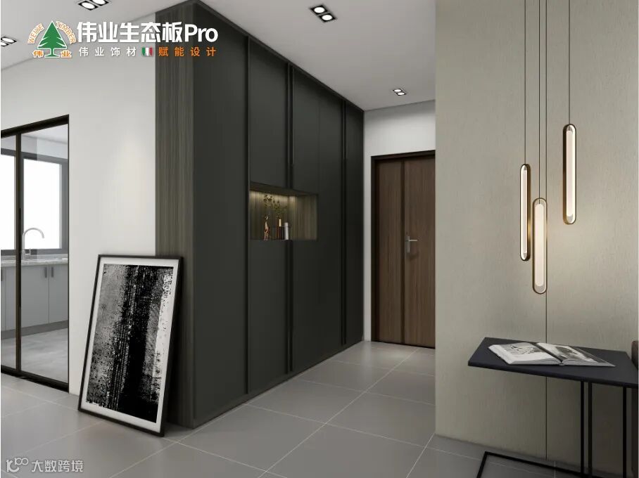 设计说明:现代极简风以利落的线条、简洁的造型设计为主,选用高端的伟业生态板Pro饰材,营造出时尚前卫、优雅精炼的家居氛围,为您打造2020年最向往的家居生活。