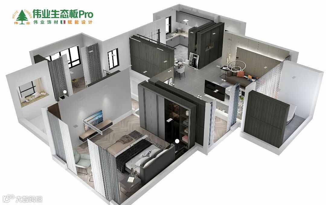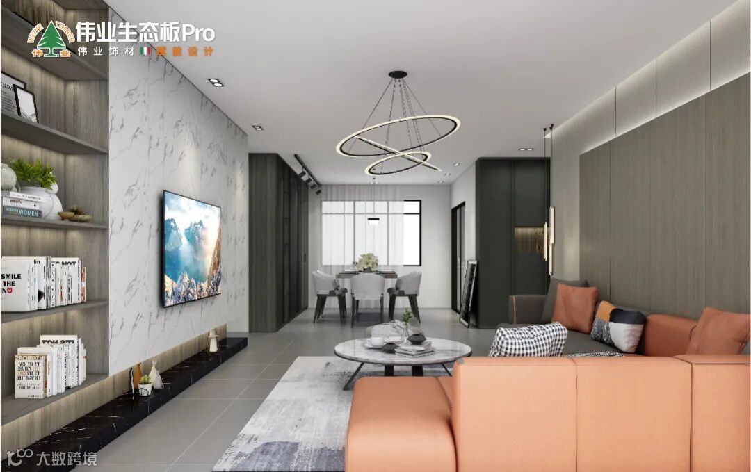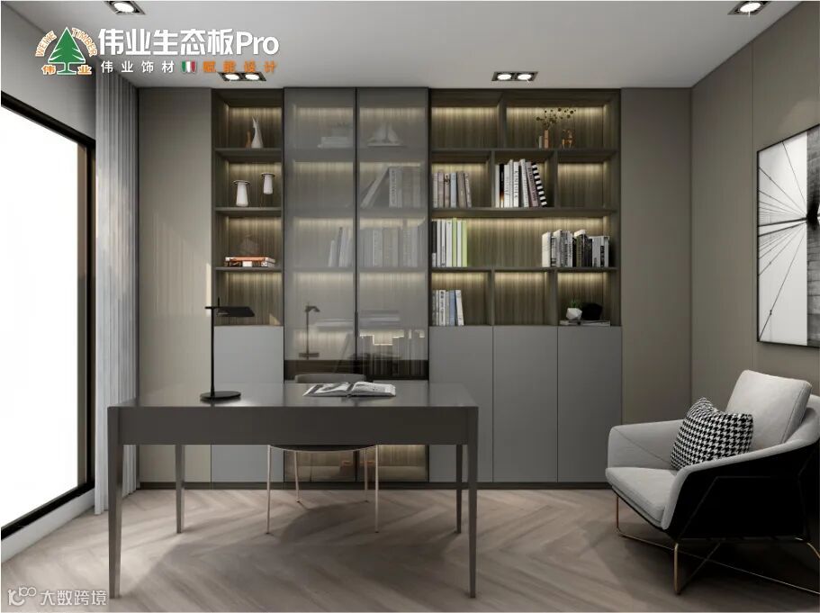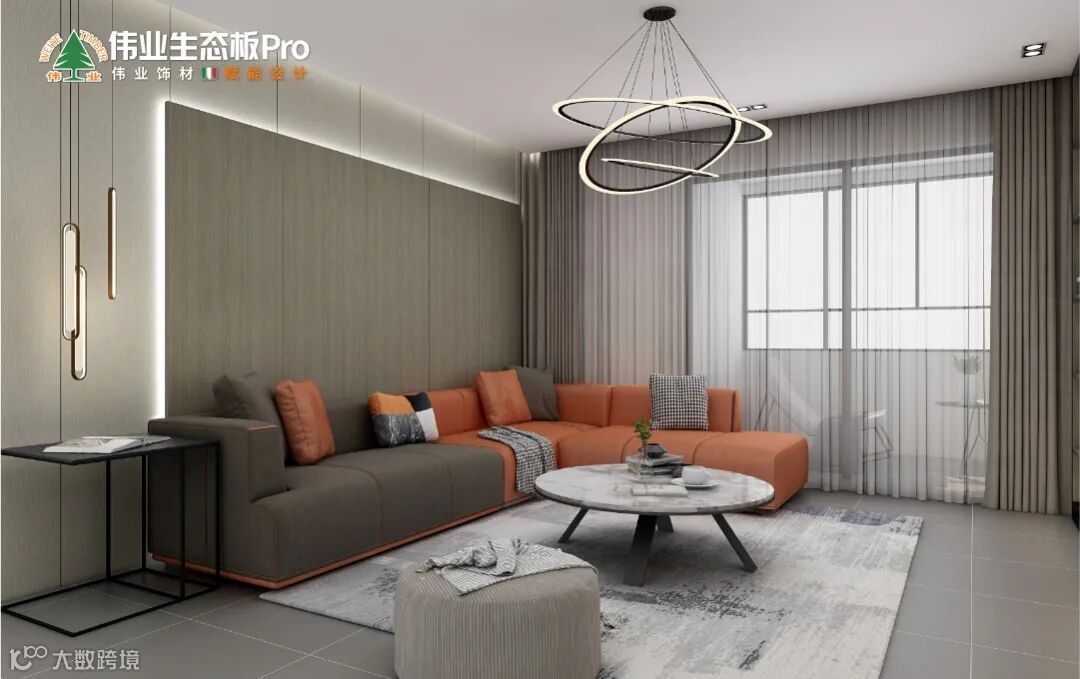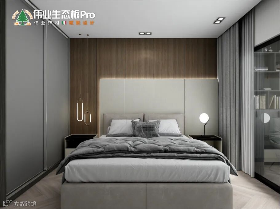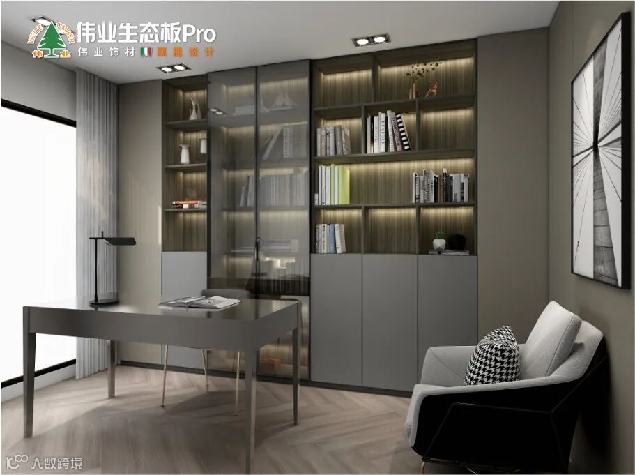 设计说明:现代极简风以利落的线条、简洁的造型设计为主,选用高端的伟业生态板Pro饰材,营造出时尚前卫、优雅精炼的家居氛围,为您打造2020年最向往的家居生活。