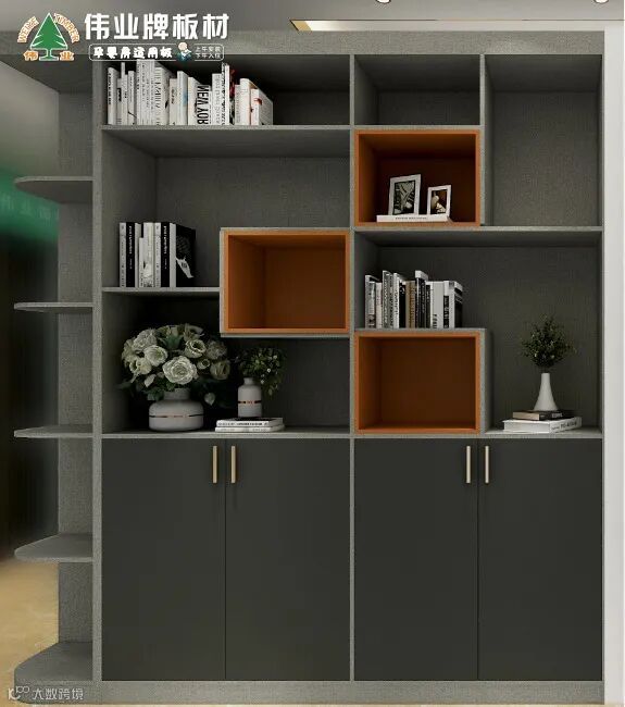 装饰柜围绕展示和收纳的主要功能,整体上的用色以高级灰为主,加入橙色的装饰格、圆弧转角等巧妙设计,变身多功能储物柜,将各类物品尽收其中,真正做到每一寸空间都为您所用,让家更加干净利落。