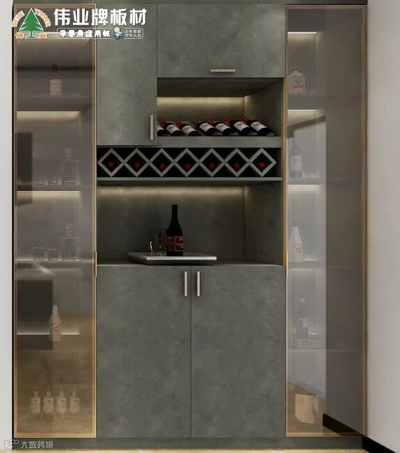 定制酒柜已经成为一种潮流,这款酒柜造型简约、色调浅灰、棱形酒架设计,集藏酒与装饰功能为一体,从细节处流露出对精致生活的诠释,打造出轻奢的美感,让餐厅更加出彩。