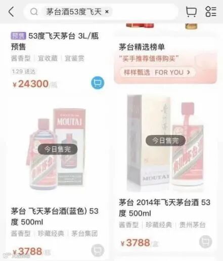 区已难觅飞天茅台的踪迹。1月26日近21点,盒马页面显示,2016年53度500ml的飞天茅台酒售价为4299元,2019年的售价为3699元,均为明日送达;但不到1个小时后,记者发现,盒马已下架了相关产品。