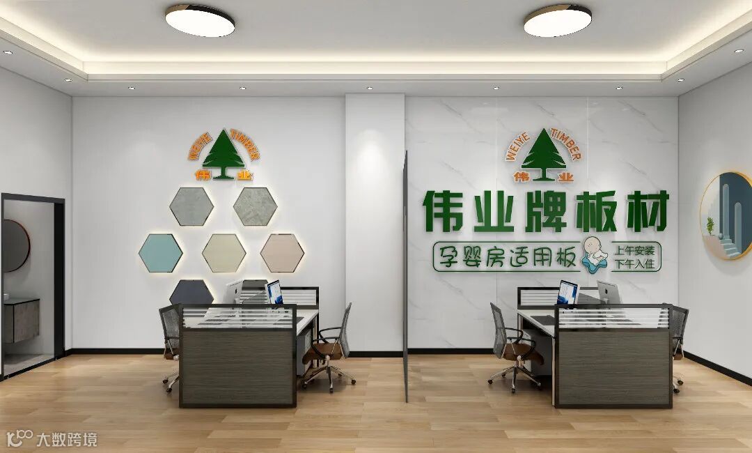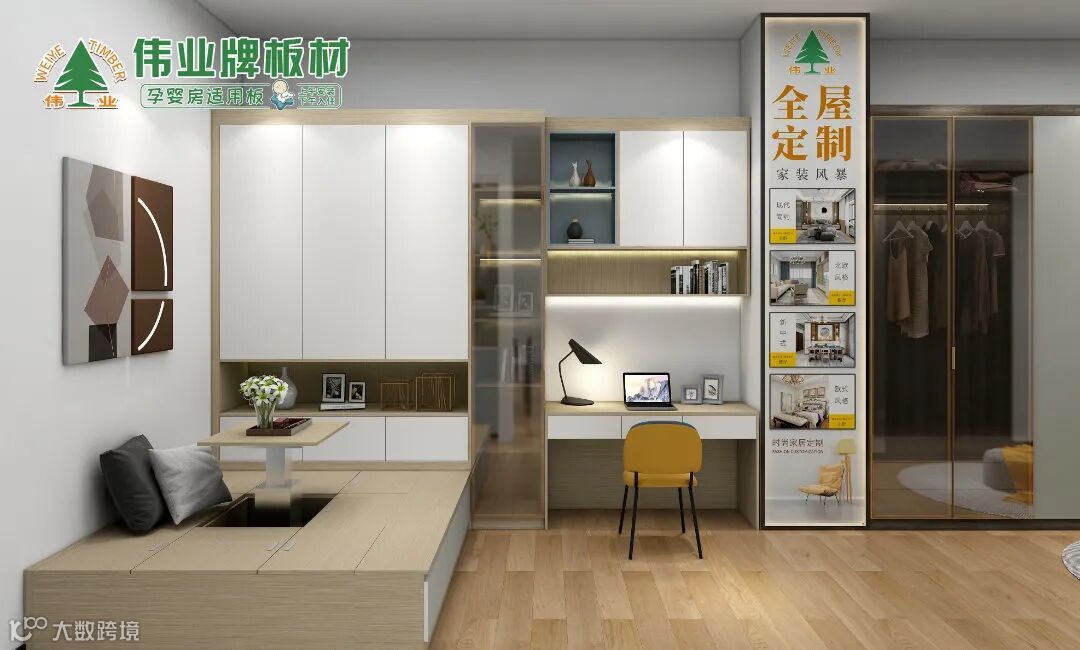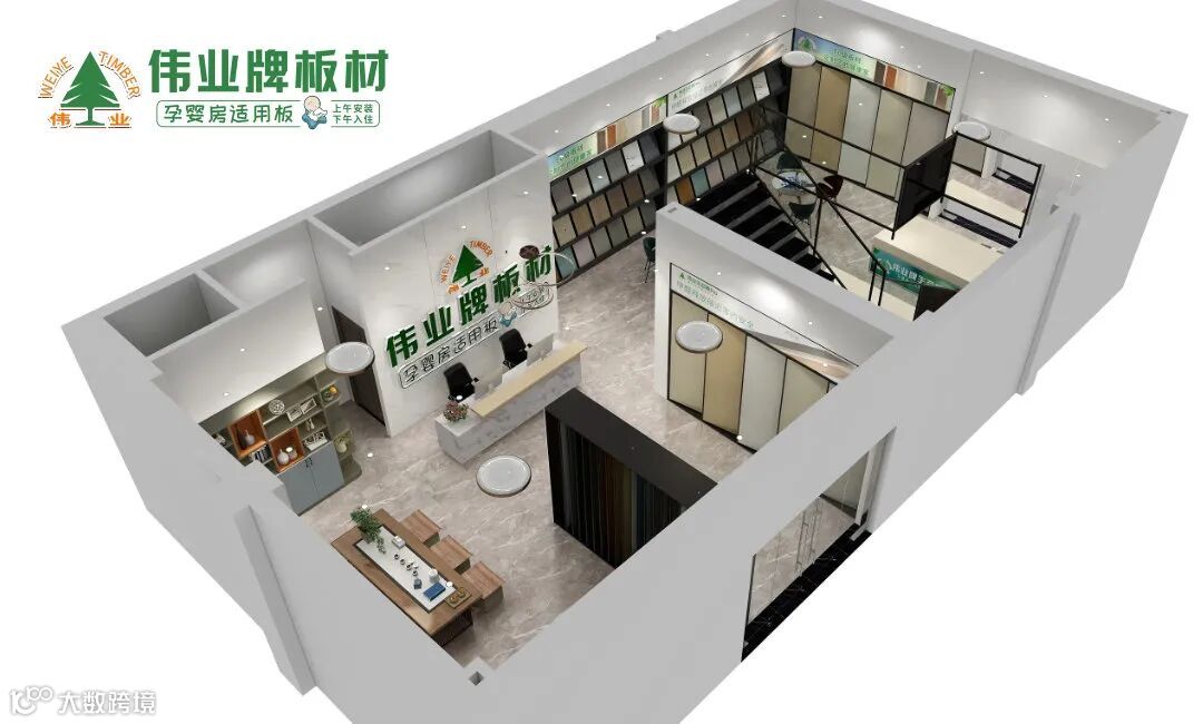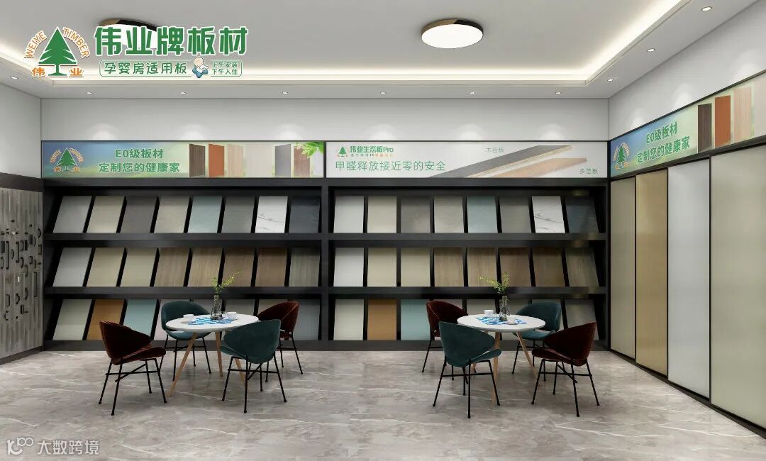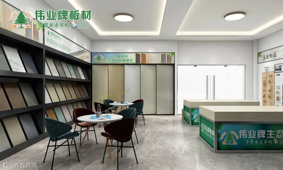 伟业牌板材的赣州展厅空间分为一楼板材区、二楼全屋定制区,促进专卖店的板材产品与全屋定制之间的相互作用,以全新的展厅形象,为当地消费者提供定制环保、时尚家解决方案。