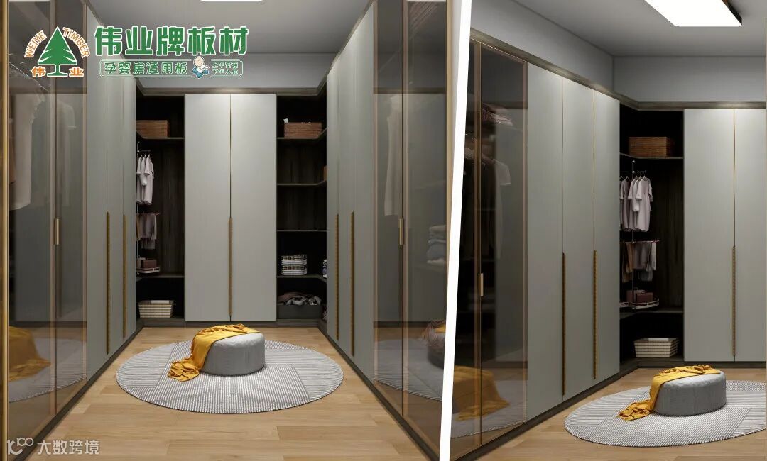 为了满足消费者对时尚家居的定制需求,二楼的全屋定制区以轻奢、极简、现代等设计理念为主,运用伟业牌板材时尚花色,打造品味高雅、格调时尚的定制产品展示空间,让消费者每走一步都充满对家的期待感。