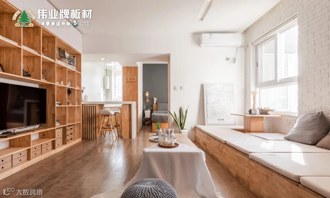 临江、海、河的景观型住宅,视野开阔,适合打造观赏式飘窗,定制一排矮飘窗柜,放上软垫、抱枕和绿植,让家多出一个功能区,临窗而坐,一杯咖啡,一本书,就是一个慵懒下午,成为家中的点睛之笔。