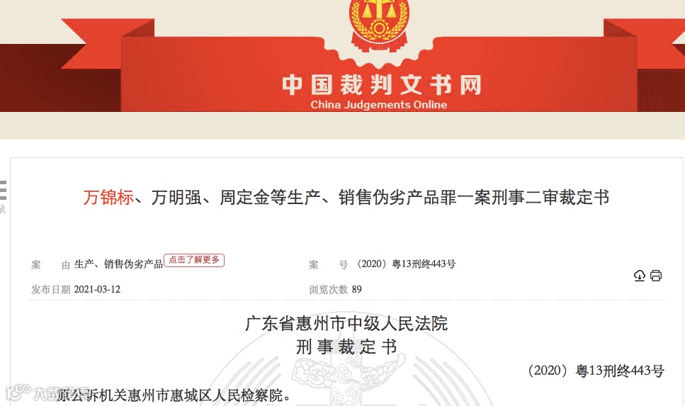 然而,在暴利的驱动之下,有利差就有人造假。近日,广东惠州中级人民法院判决了一件令人“啼笑皆非”的犯罪案件,引发热议。