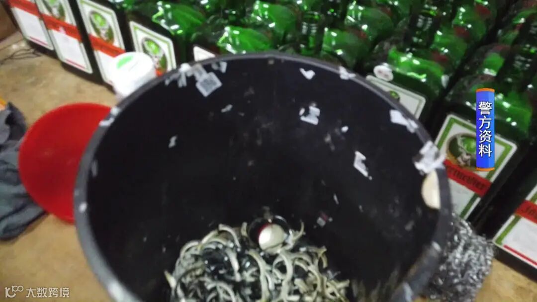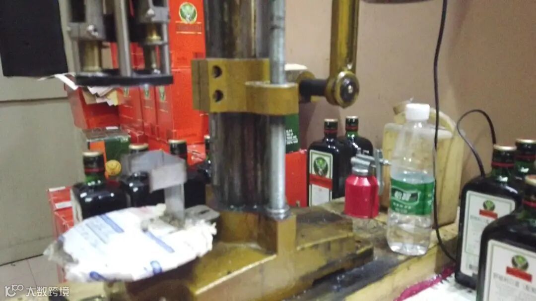 民警在民宅一楼的小房间发现有很多用于制作假酒的空瓶、酒箱、标签、酒盖之类的制假原材料。并抓住了该团伙的主要犯罪嫌疑人—桂某。然而在二楼,制作假洋酒的窝点也全貌暴露了出来。