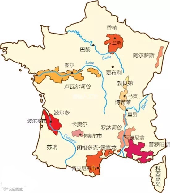 法国主要产酒区:
