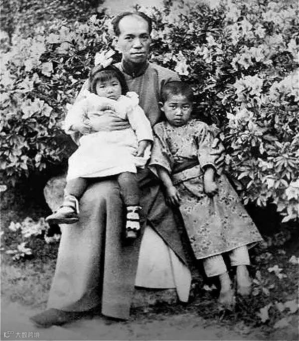 ▲ 1910年,梁启超抱着2岁的思庄和3岁的思忠
