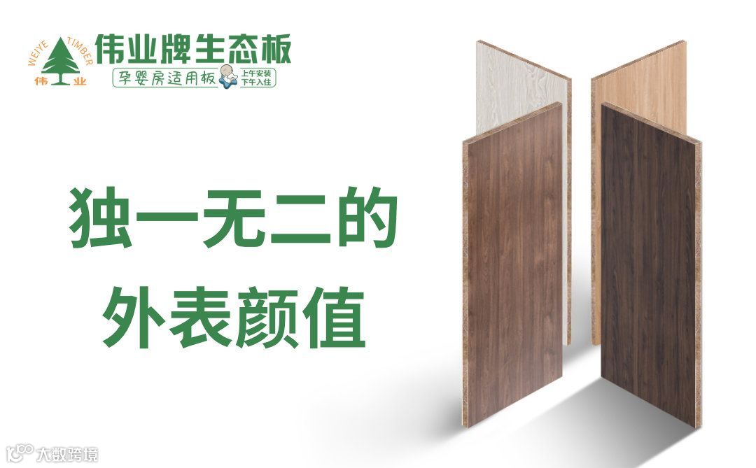 伟业牌生态板注重内外兼修,从原料到芯材,从质量到外观,都严守匠心制造的理念,有效弥补普通生态板易鼓泡脱胶、易翘曲、易褪色、甲醛超标等质量缺陷,从内芯到外在都无可挑剔,赢得了同行和消费者的一致赞誉。