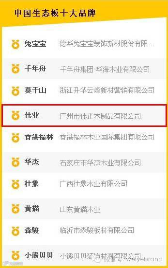 “伟业牌”板材曾在业内多次获得重量级荣誉,是市场上少有的抗甲醛环保装饰板材,品质一流!这次力压群雄,在众多品牌中成功夺得“中国生态板十大品牌”称号,绝对名副其实!
