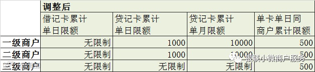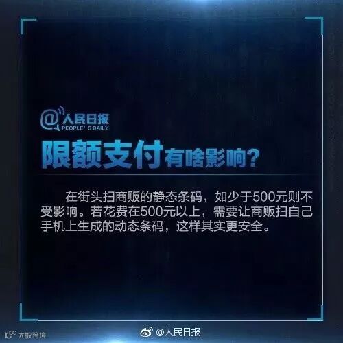 3月26日,“银联小微商户服务”官方微信号宣布,为了配合条码支付规范落地,2018年3月29日 23:59:59起,针对商户静态码收款额度进行调整。调整之后,单卡单日同商户累计限额500元。