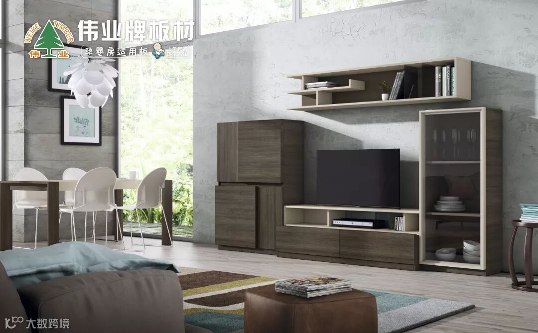 电视柜可谓客厅的“灵魂”,既要颜值也要质量,好板才能定制出好家具。伟业木岩板从市场需求出发,积极整合全球优质的原木、粘胶剂、油墨纸等生产资源,成品板材具有极致环保、极致防水、极致防火、极致定型、极致耐污、极致锁色六大特性,用匠心制造和先进的系统化生产流程,带给消费者更优质、更环保、更高端板材。伟业木岩板为轻奢定制而生,六极新材、轻奢饰面,成为中国定制家具专用板材。