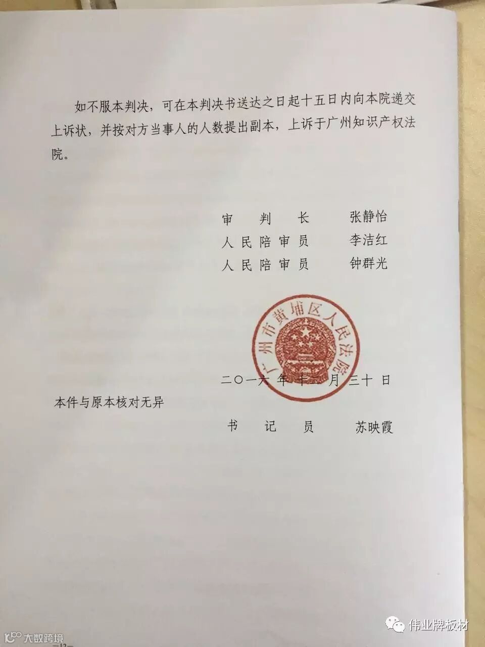 好吧,这次又是我司“伟业牌”的产品被侵权了,幸好法律是公平公正的!