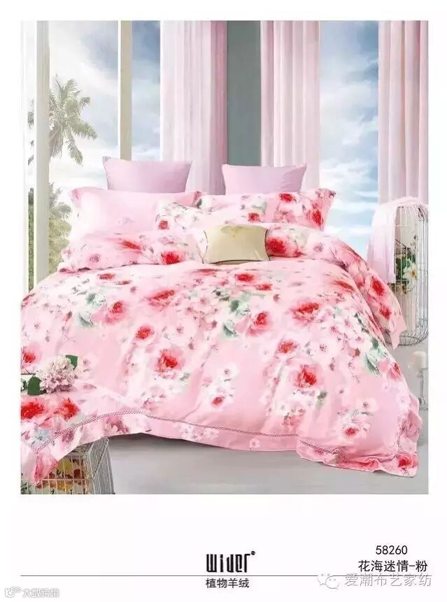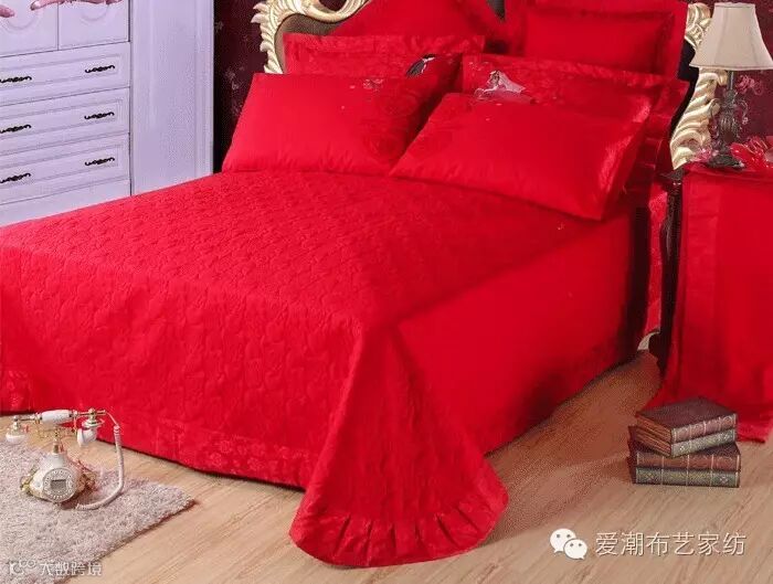 四、床盖:复杂一点的床单,欧式圆角床单也可以叫床盖。还有一种中间有棉绗缝的叫绗棉床盖,一般婚庆的套件里面用的比较多。如下图