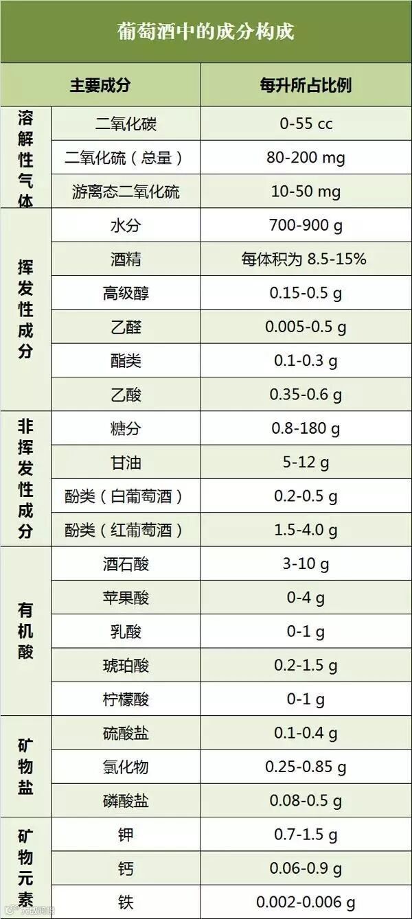 作为一种酒精饮料,葡萄酒中所含成分直接决定了其内涵;而作为入口的东西,它的成分更关乎每个饮用者的人身健康。那么,葡萄酒中究竟含有哪些成分?所占比例又如何呢?