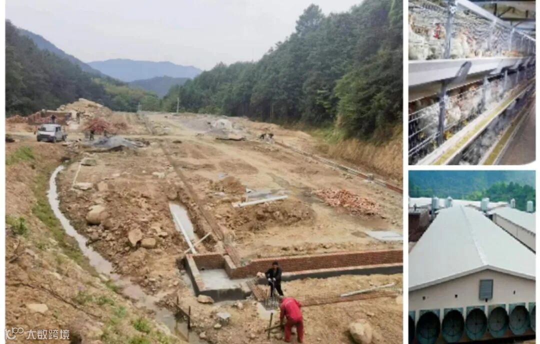 ▲温氏“公司+农户”肉鸡养殖场建设施工图及建成效果图