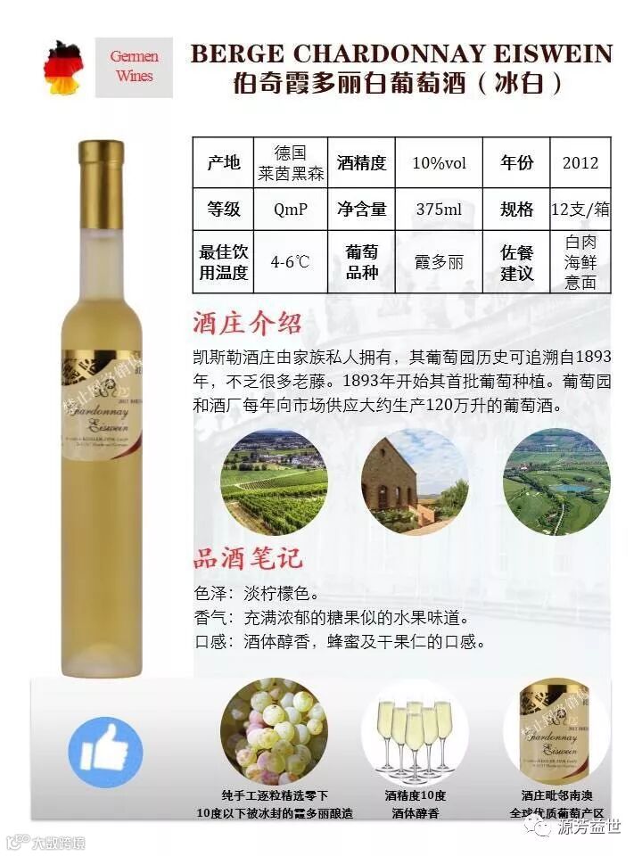 德国冰酒以纯正的口感、复杂的风味和完美的平衡度闻名全球。德国关于冰酒的最早记录始于19世纪,不过直到20世纪60年代,冰酒的商业化生产时代才开始。