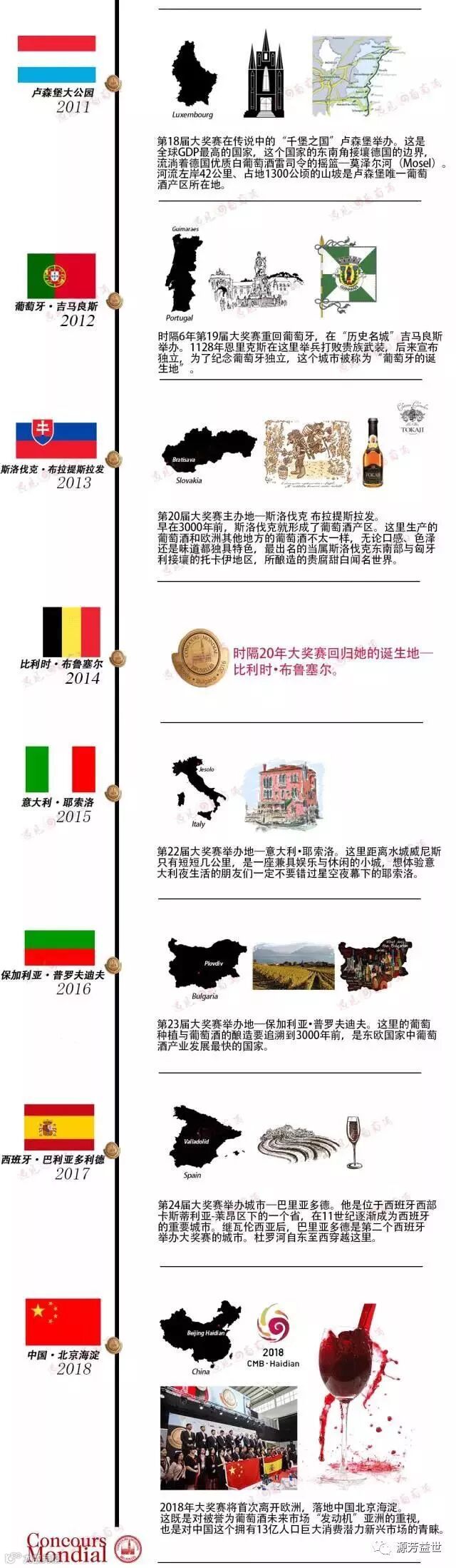 1994年成立于比利时布鲁塞尔,是世界上影响力最大的葡萄酒竞赛之一,2006年后,大赛开始在里斯本、波尔多、西西里等等地区举办。每年有超过6000款葡萄酒参加竞赛,大约有30%的参赛酒能够获奖,赛事由欧盟的相关机构现场监督以保证公正性。而这个国际上备受瞩目的赛事,即将在2018年莅临北京中国!