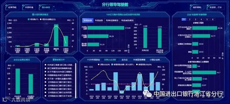 在疫情防控期间,“云上口行”分行领导驾驶舱紧急上线“150亿元稳外贸稳企业促发展专项贷款”模块,助力管理者及时掌握专项贷款投放进度和给企业降低融资成本的情况;主动梳理政府监管部门及总行抗击疫情政策,助力分行应时制宜升级各项惠企政策。