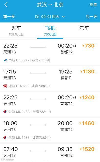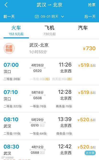 从武汉到北京高铁票500多