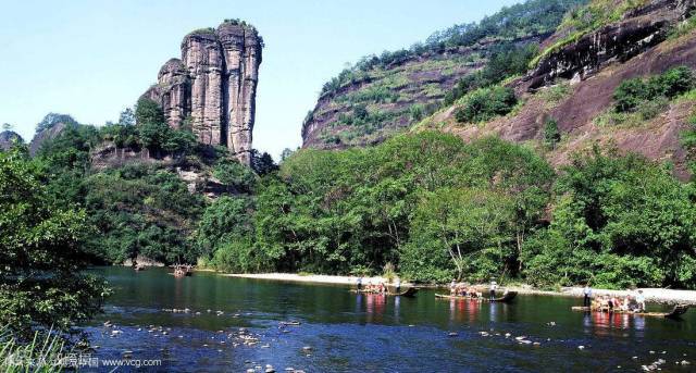 武夷山,武夷山位于江西与福建西北部两省交界处,武夷山脉北段东南麓总面积999.75平方公里,是中国著名的风景旅游区和避暑胜地。属典型的丹霞地貌,是首批国家级重点风景名胜区之一。武夷山是三教名山。自秦汉以来,武夷山就为羽流禅家栖息之地,留下了不少宫观、道院和庵堂故址。武夷山还曾是儒家学者倡道讲学之地。