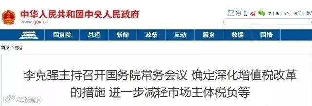 国务院总理李克强3月28日主持召开国务院常务会议,确定深化增值税改革的措施,进一步减轻市场主体税负。
