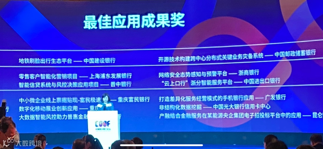 2020年12月11日,“第四届中国数字银行论坛”在深圳召开,论坛发布了2020年中国银行业金融科技应用成果大赛获奖名单,进出口银行“云上口行”智能服务平台项目经过初审、复审、终审和相应评审答辩环节最终在146家机构报送的243个参赛项目中脱颖而出,荣获最佳应用成果奖二等奖。此次大赛由中国银保监会主管的《中国银行业》杂志社主办,论坛上主办方还介绍了本次参赛项目呈现的五大亮点,其中提及我行报送的“云上口行”项目为智能化亮点项目之一。