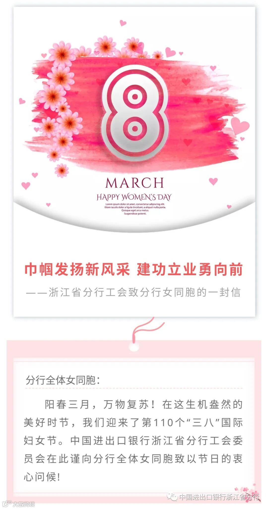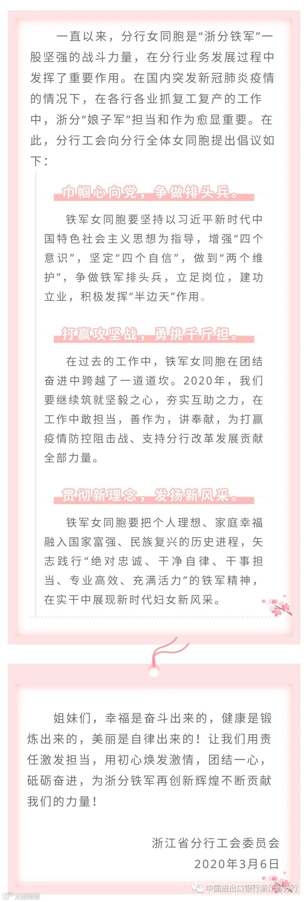 巾帼发扬新风采 建功立业勇向前——浙江省分行工会致分行女同胞的一封信