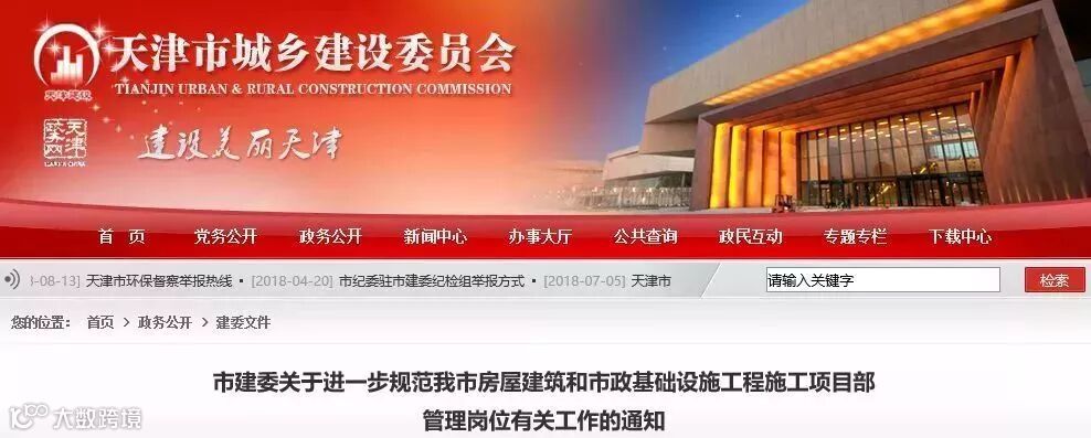 2018年10月8日,天津住建委下发文件,对工程施工项目部人员管理提出新要求。通知明确提出: