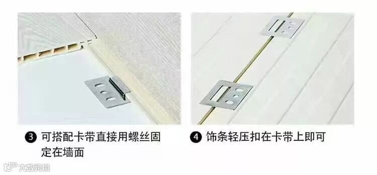 先顶后墙是指先安装吊顶再安装墙面。安装吊顶时需要先固定好龙骨。在墙面安装第一块集成墙面需先用钢钉固定在墙面上,以后每安装一块一边扣在前一块集成墙面上,另一边用钢钉固定。安装时要注意整体的画面设计,需先分格弹线,根据预先设计好的图纸安装。如遇到插座位置,需要预先留好插座口。