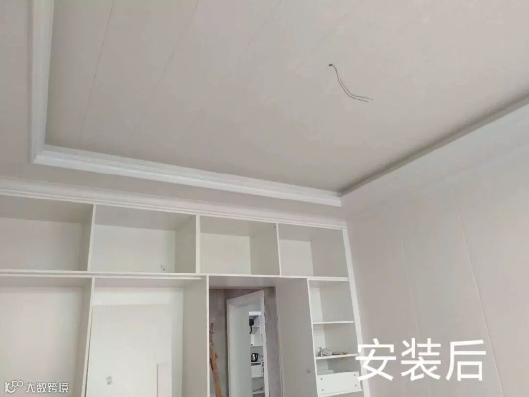 另外一个注意事项,墙顶一体化,先顶后墙。一方面因为吊顶装修较复杂,需要安装龙骨,为了避免安装吊顶时撞击墙面,需要等吊顶装完后再安装墙面。另一方面是安装完吊顶才能确定吊顶与地面的距离,再根据实际高度切割材料。