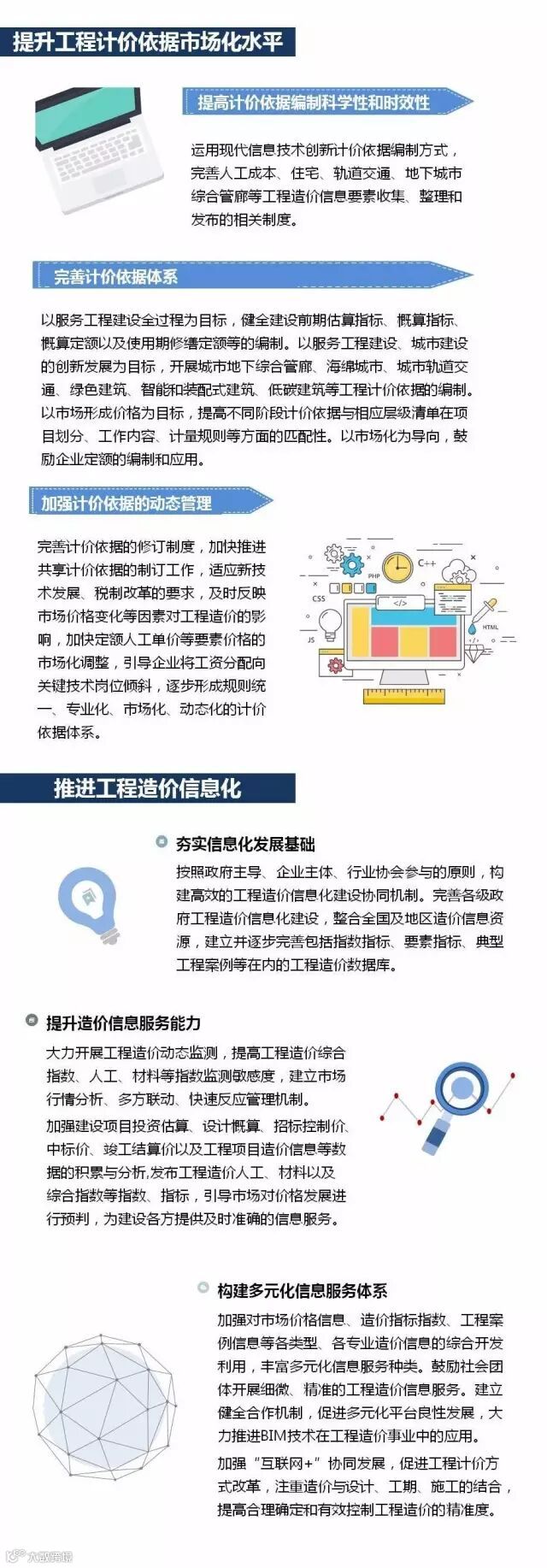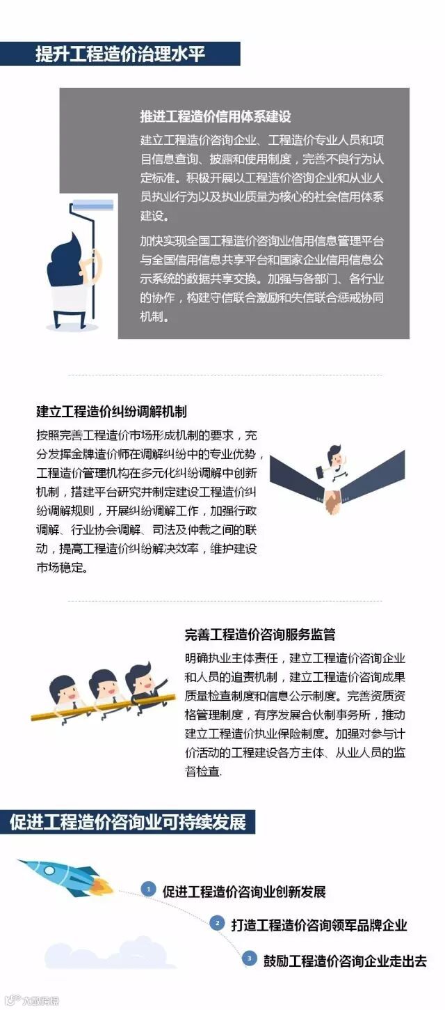 前景意味着“钱景”,在《关于加强和改善工程造价监管的意见》和《工程造价事业发展“十三五”规划》的相继出台后,工程造价行业在探索中稳步前行。下面一图清晰表述十三五规划后的工程造价行业前景。