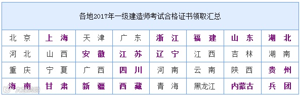 2017年一级建造师考试资格证书领取各地已经陆续开始了!为了便于大家及时查询,辰联优才整理了全国合格证书领取方式汇总,如下所示,以大家供参考!